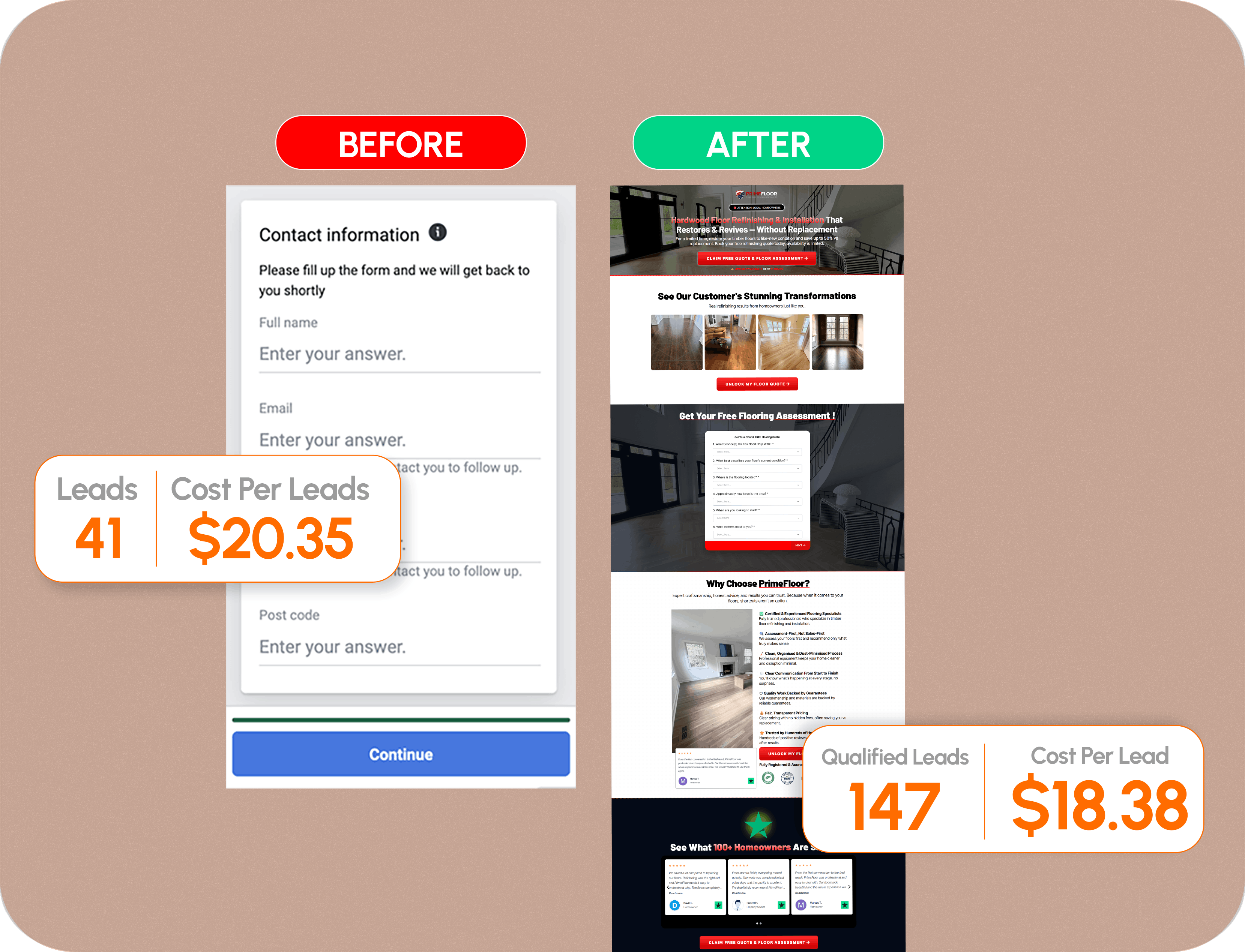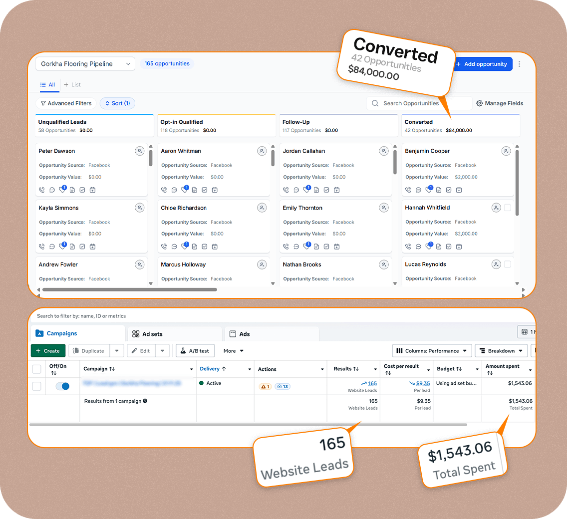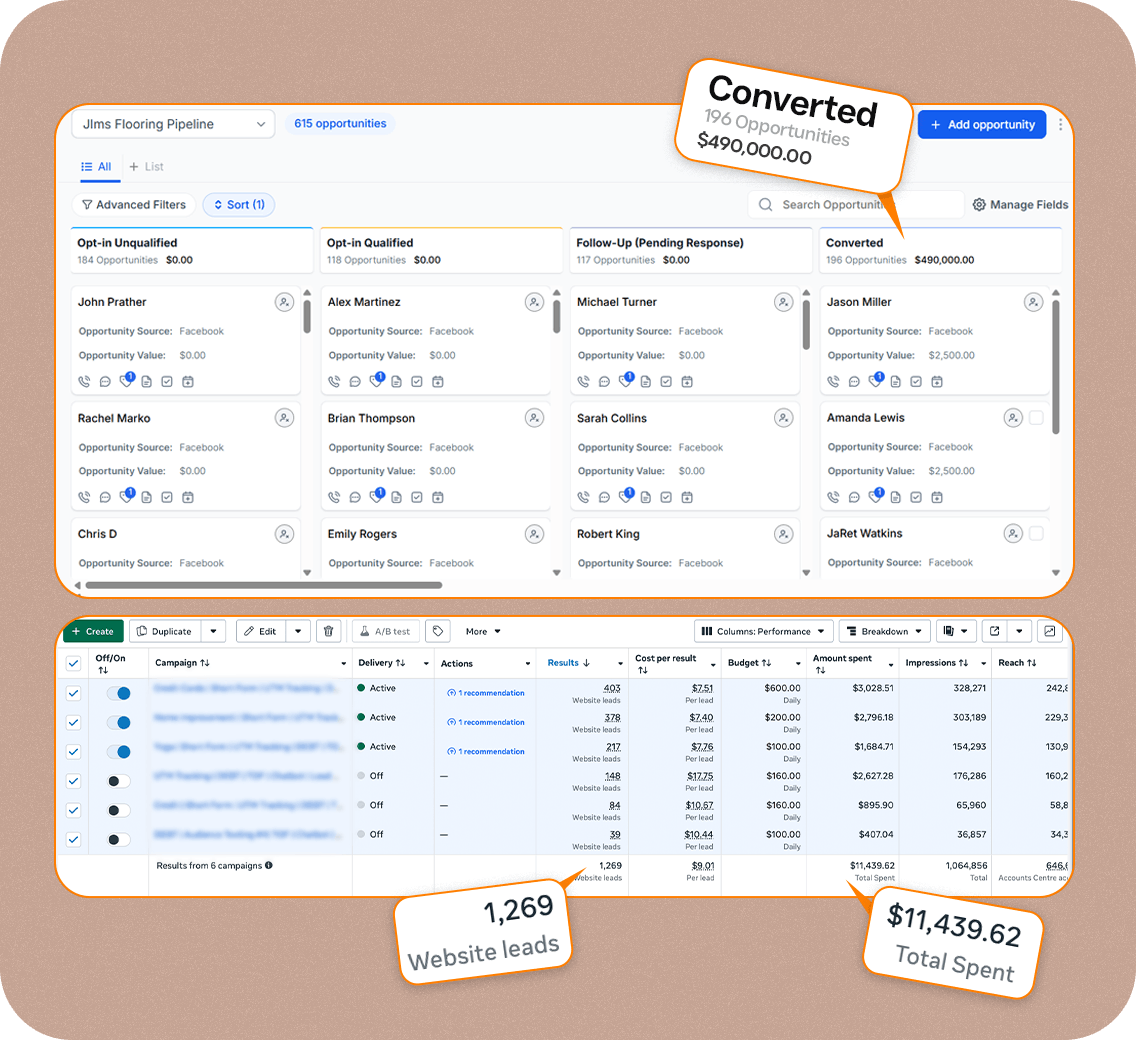 This is where most flooring companies lose money and where we fix it. Our proven qualification funnel filters out price shoppers before they book, so only homeowners with real budgets and timelines reach your calendar.