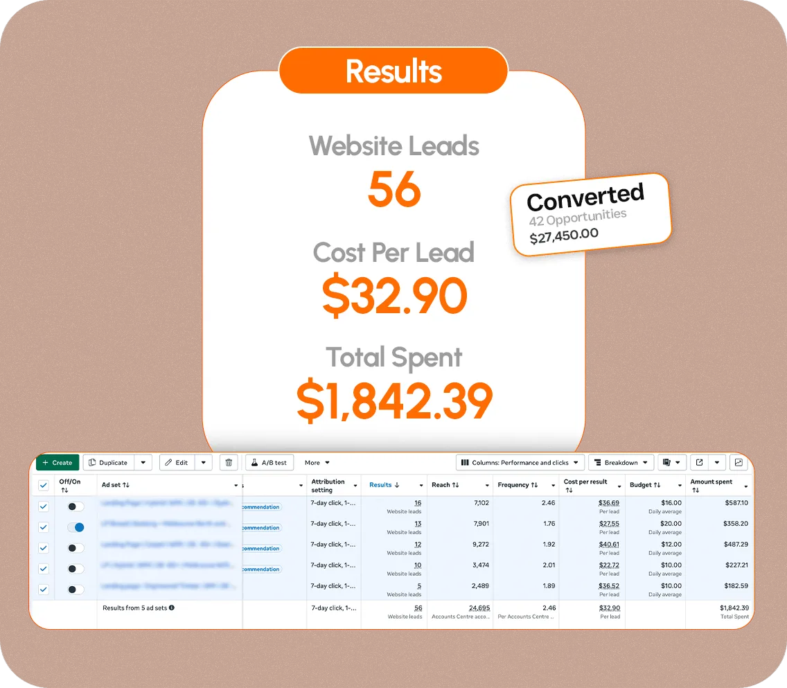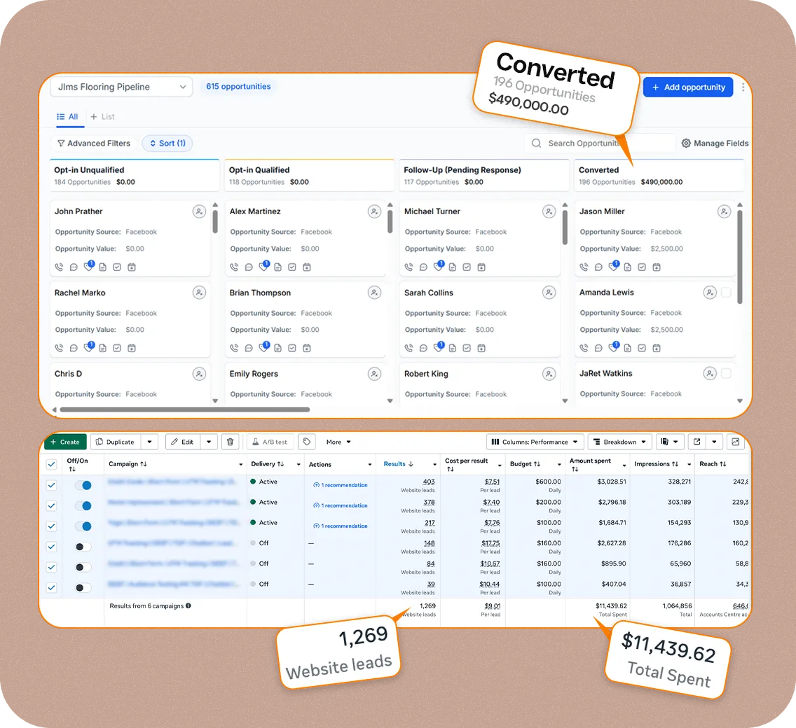 Most agencies sell ads or leads. We fix the system behind them. That means filtering homeowners before the estimate, not after - so your calendar fills with serious buyers, not time-waster