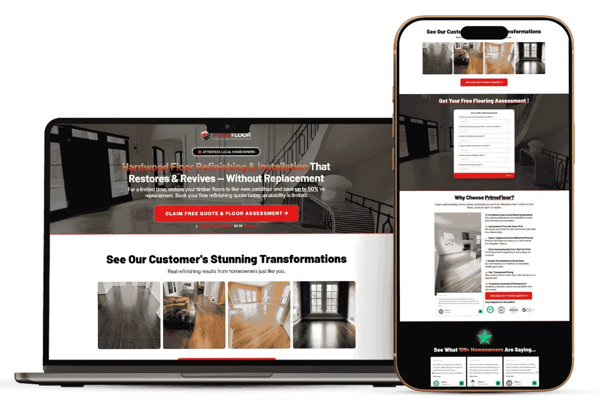 Most flooring companies start seeing higher-quality leads within 30–90 days. Early improvements usually come from fixing qualification and follow-up first, then optimising traffic and funnels once the system is in place.